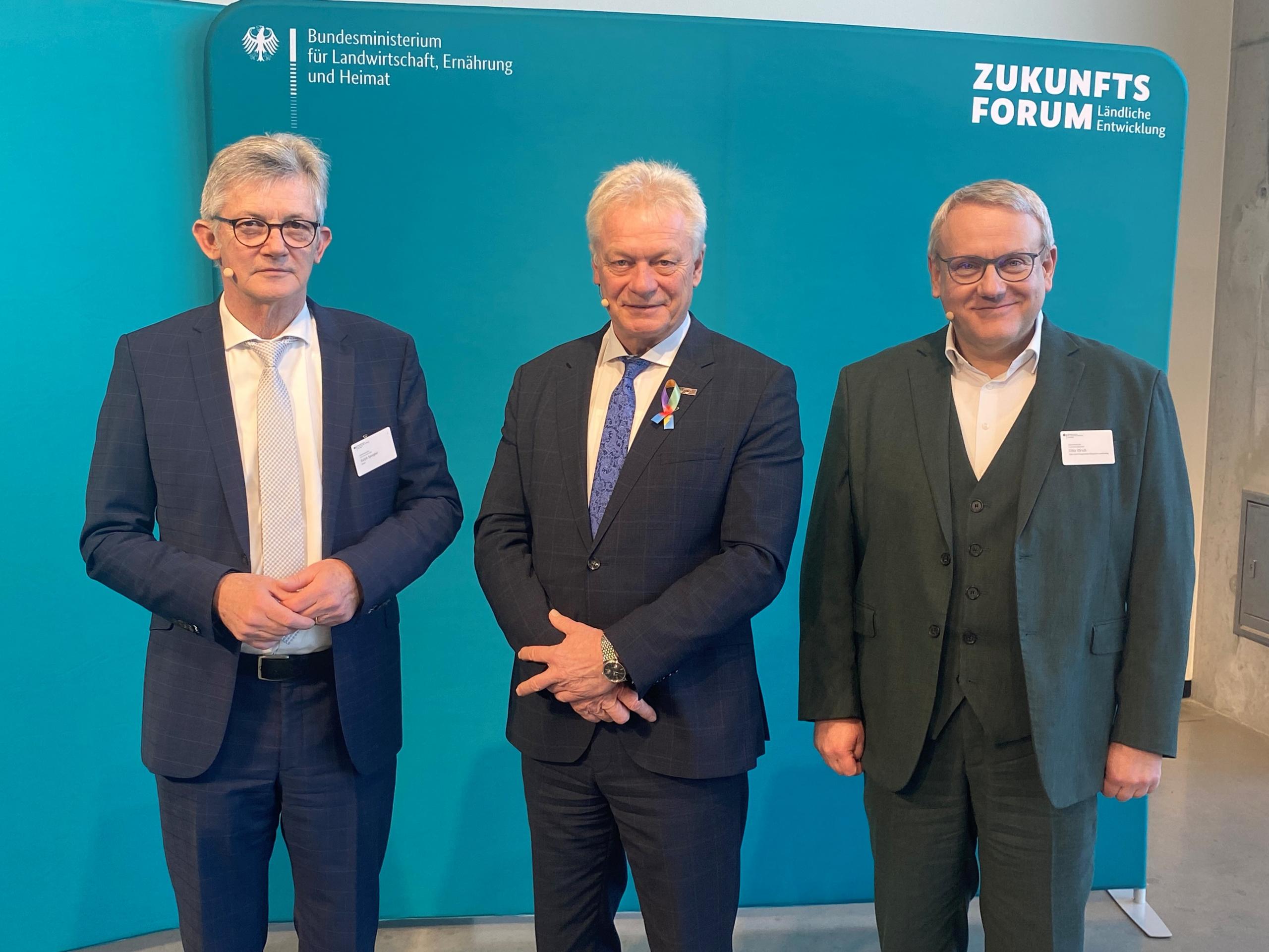 Mit dem Zukunftsforum bringt das Bundesministerium für Landwirtschaft, Ernährung und Heimat (BMLEH) während der Grünen Woche die zentralen Akteure der ländlichen Entwicklung zusammen. Über 2.000 Teilnehmerinnen und Teilnehmer aus Kommunen, Verbänden, Zivilgesellschaft, Wissenschaft und Wirtschaft beraten zwei Tage lang, wie ländliche Räume unter den Bedingungen knapper Flächen, wachsender Zielkonflikte und tiefgreifender Transformationsprozesse nachhaltig gestaltet werden können. Der Bundesminister für Landwirtschaft, Ernährung und Heimat, Alois Rainer, der Präsident des Deutschen Städte- und Gemeindebundes (DStGB), Ralph Spiegler, und der Vizepräsident des Deutschen Landkreistages (DLT), Götz Ulrich, haben das Zukunftsforum heute eröffnet.