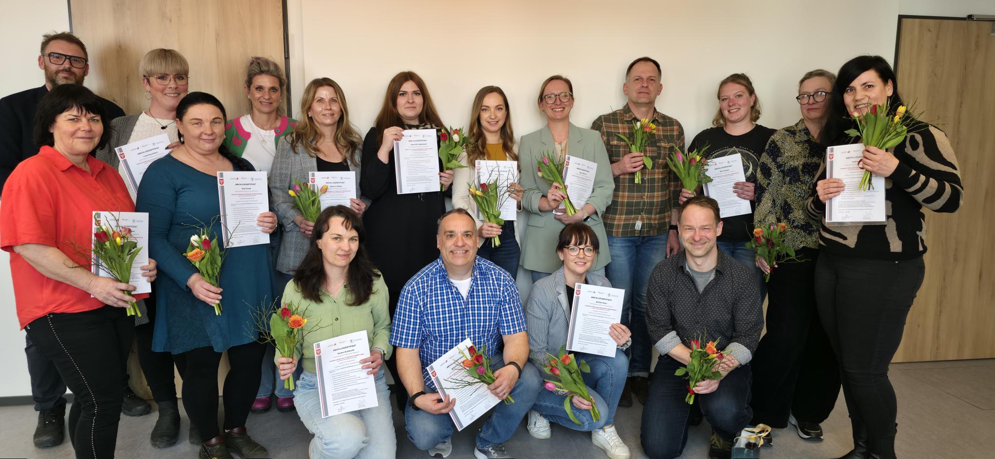 Zum ersten Mal wurde im Burgenlandkreis vom Jugendamt ein Qualifizierungskurs der „insoweit erfahrenen Fachkräfte“ angeboten. Die 18 Teilnehmerinnen und Teilnehmer erhielten hierfür im März 2026 von Jugendamtsleiter Patrick Schatz im Landratsamt Naumburg ihre Zertifikate.