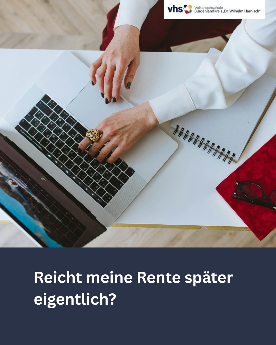 Wie gut bin ich im Alter abgesichert? – Diese und weitere Frage stellen sich viele, vor allem zu Beginn ihres Berufslebens. Deshalb haben die vhs Burgenlandkreis in Kooperation mit dem Amt für Bildung, Kultur und Sport des Burgenlandkreises die Veranstaltungsreihe „Life Hacks für die Zukunft" organisiert. Im Rahmen des Projektes "JUGEND STÄRKEN: Brücken in die Eigenständigkeit“ sind alle Veranstaltungen dieser Reihe für Jugendliche und junge Erwachsene kostenlos.